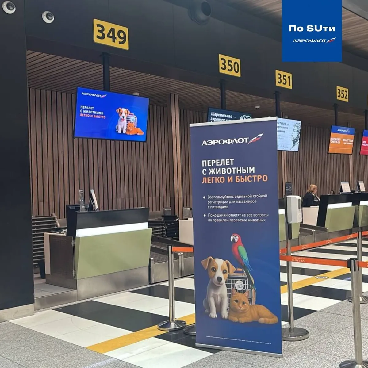 На новой стойке можно пройти все формальности отдельно от общего потока: сотрудники проверят документы и контейнер для перевозки, оформят животное и выдадут посадочный талон.